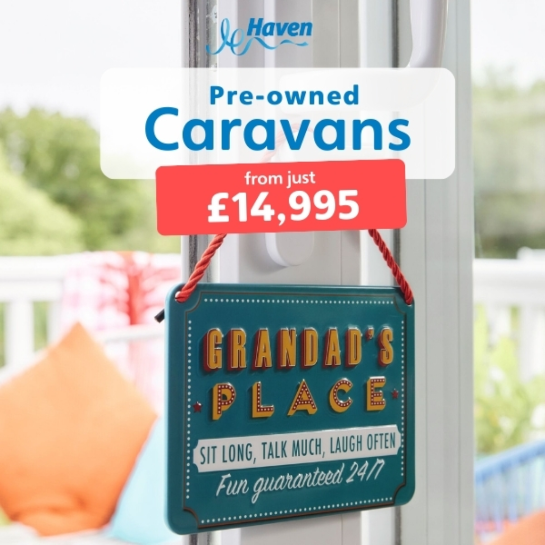 *Holiday home price is based on a pre-owned holiday home and includes siting, connections and standard accessories. Price excludes 2025 site fees, running costs and add-ons requested at point of sale. Subject to status and availability. As at September 2025, price is available at Blue Dolphin, Church Farm, Cleethorpes Beach, Combe Haven, Craig Tara, Doniford Bay, Far Grange, Golden Sands, Hafan Y Mor, Haggerston Castle, Lakeland, Littlesea, Marton Mere, Quay West, Presthaven, Primrose Valley, Reighton Sands, Rockley Park, Skegness, The Orchards, Thornwick Bay, Wild Duck and Weymouth Bay. Price can be withdrawn at any time.